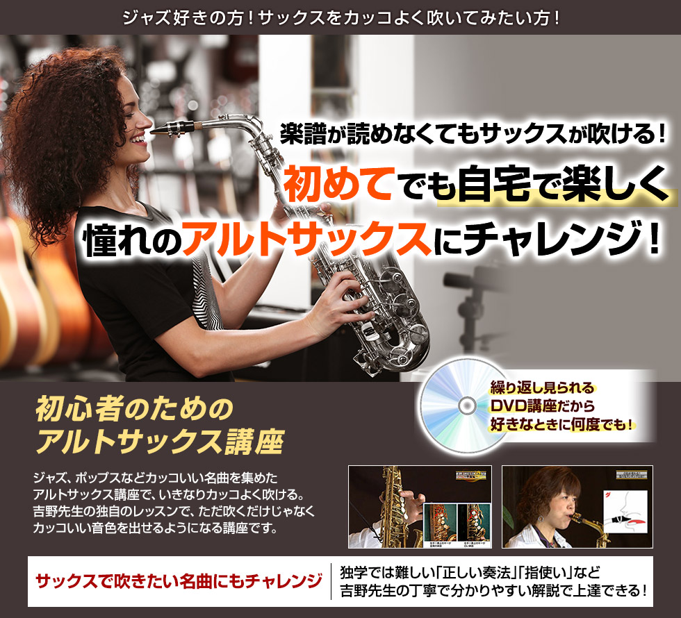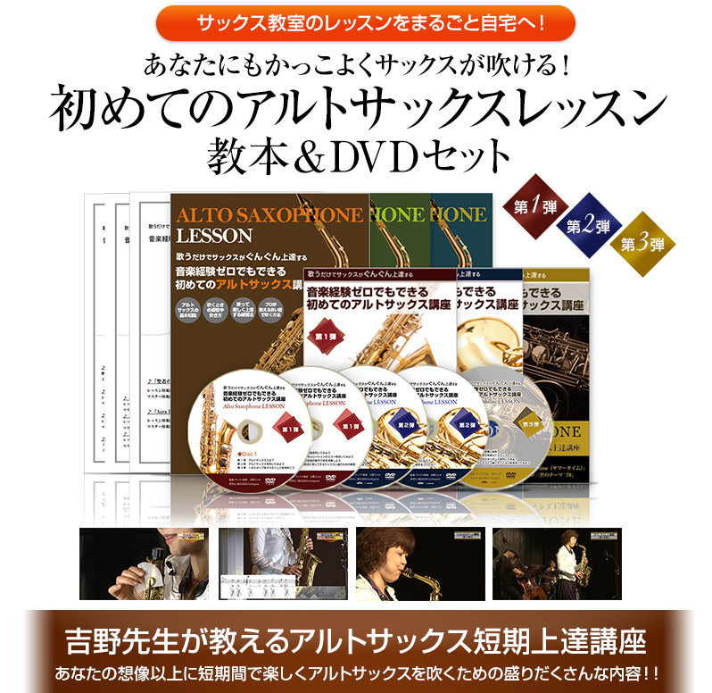 初心者の立場に立った、ていねいで、わかりやすい吉野先生のレッスンは、「まるで吉野先生のサックス教室でレッスンを受けているみたいです!」と実践された方からも喜びの声が上がっています。