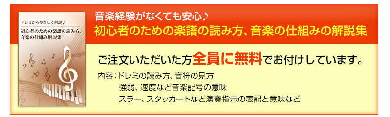 このページを経由してご購入頂いたお客様には、期間限定でパッと見て吹ける初心者向け楽譜とワンポイントアドバイスを今だけ特典として無料でプレゼントしております。